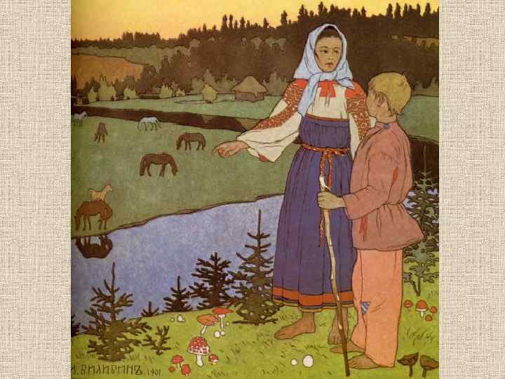 В 1899 году Билибин случайно приезжает в деревню Егны Весьегонского уезда Тверской губернии. Здесь он впервые создает иллюстрации, в ставшем в последствии «билибинском» стиле, к своей первой книге «Сказка о Иван-царевиче, Жар-птице и о Сером волке» .
