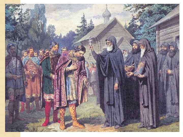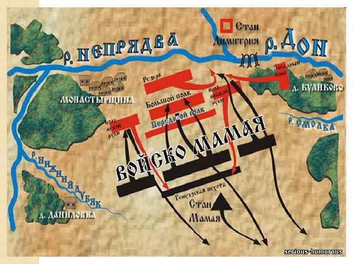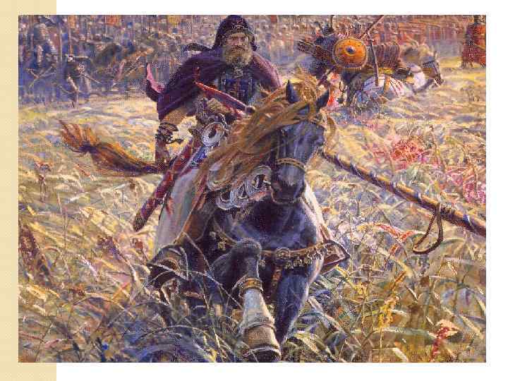 Подготовка к сражению темник Мамай Собрал огромное войско (до 150 тыс. чел. ) Нанял генуэзскую пехоту Заключил союз с литовским великим князем Ягайло и рязанским князем Олегом Ивановичем Дмитрий Иванович Собрал ратников по всей Руси (кроме Рязани, Суздаля, Твери, Смоленска, Новгорода) Привлек на свою сторону братьев литовского князя Собрал большую армию Получил благословение Сергия Радонежского в Троице-Сергиеве монастыре