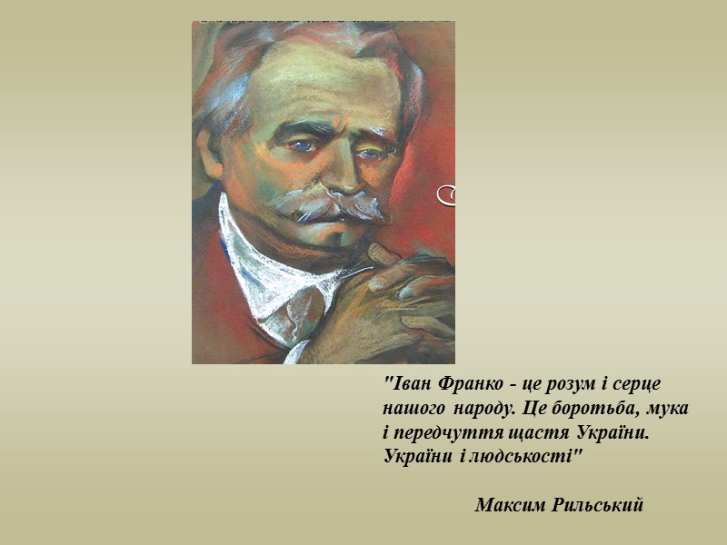 "Іван Франко - це розум і серце нашого народу. Це боротьба, мука і передчуття щастя України. України і людськості" Максим Рильський