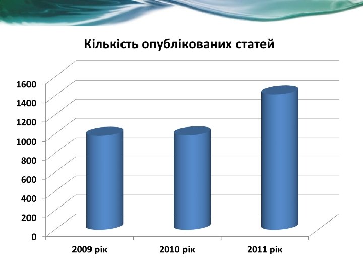 Результати роботи 40 35 30 25 20 15 10 5 0 Нові методи та теорії Інше (стандарти тощо) 2009 рік 2010 рік 2011 рік