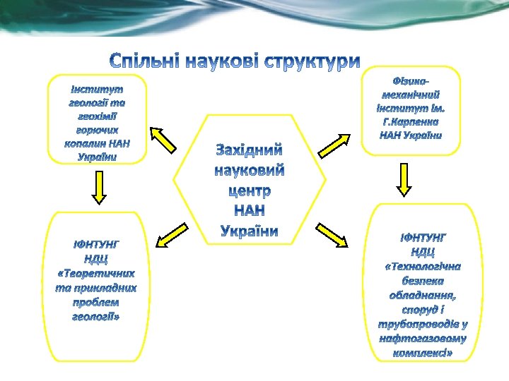 Структури, утворені в 2011 році Національний контактний пункт «Енергія» В червні 2011 року на базі Напрямки Водень та паливні елементи ІФНТУНГ створено НКП «Енергія» Відновне вироблення електроенергії Вироблення відновного палива для участі в 7 РП з досліджень ЄС Відновні джерела для опалювання/охолодження Технології уловлювання та зберігання СО 2 для генерування енергії з нульовими викидами Чисті вугільні технології Розумні енергетичні мережі Енергоефективність та заощадження Знання для формування енергетичної політики http: //ncp. nung. edu. ua