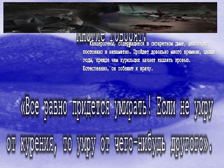 С одной стороны, так оно и есть. Курильщики умирают практически всегда преждевременно, теряя около 21 года жизни. Ведь это просто трагедия — умереть в 40 -45 лет, осознавая, что ты украл около 30 лет жизни, причем не только у самого себя, но и своих родных. Тебе никогда не придется радоваться тем достижениям и высотам, которые, возможно, были бы твоими и тех, кто дорог тебе.