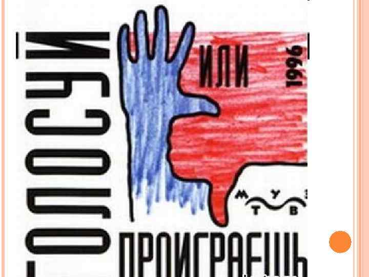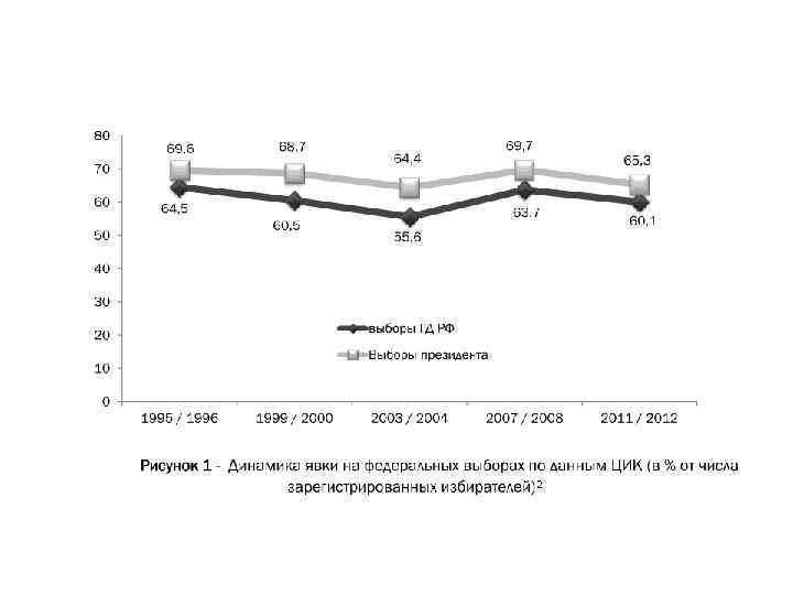 АКТИВНОСТЬ ИЗБИРАТЕЛЕЙ НА ФЕДЕРАЛЬНЫХ ВЫБОРАХ С 1995 ГОДА ПО 2012 ГОД Цикл выборов Выборы в Государственную Думу Выборы Президента дата явка 1995 -1996 17. 12. 1995 64, 8 16. 06. 1996 03. 07. 1996 69, 8 68, 9 1999 -2000 19. 12. 1999 61, 8 26. 03. 2000 68, 7 2003 -2004 07. 12. 2003 55, 7 14. 03. 2004 64, 4 2007 -2008 02. 12. 2007 63, 8 02. 03. 2008 69, 8 2011 -2012 04. 12. 2011 60, 2 04. 03. 2012 65, 3
