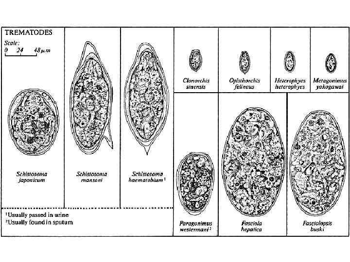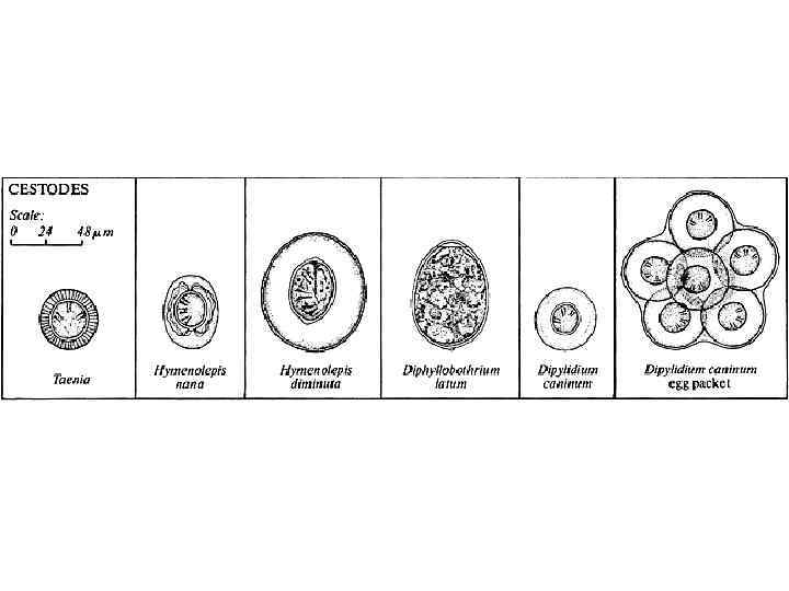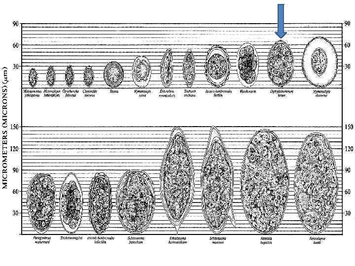 Широкий лентец Голова длиной 3— 5 мм имеет продолговато-овальную форму, сплющена с боков. По бокам располагаются 2 листовидные щели, с помощью которых червь прикрепляется к слизистой оболочке кишечника. Яйца лентеца овальные, относительно крупных размеров (в среднем 70 на 45 мкм). На одном конце яйца расположена крышечка. Из организма окончательного хозяина выводятся во внешнюю среду незрелые яйца (до 1 000 в сутки). Иногда в фекалиях присутствуют также задние членики.