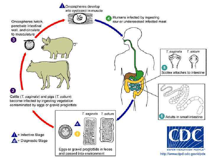 Taeniarhinchus saginatus (Taenia saginata) Человек заражается тениаринхозом при употреблении в пищу зараженного мяса: сырого, недостаточно термически обработанного либо слабо соленого или вяленого.