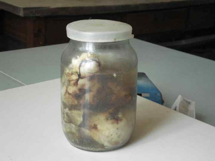 Была выполнена торакотомия слева. Получено 1800 мл бесцветной умеренно густой жидкости, в которой присутствовал бледно-жёлтый творожистый материал. В творожистой массе обнаружен плоский червь длиной 6 мм красно -коричневого цвета, который позже был определён как Paragonimus westermanni.