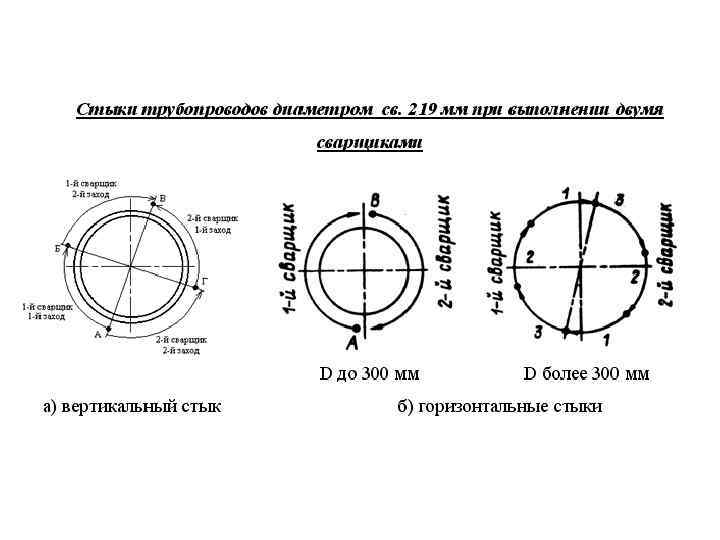 Порядок наложения слоев при сварке одним сварщиком горизонтальных неповоротных стыков труб: диаметром до 219 мм диаметром более 219 мм