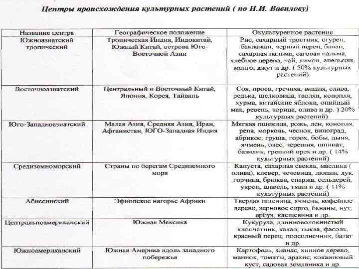 Карта центров происхождения культурных растений 6 Ц. Американский 3 Средиземноморский 2 Восточноазиатский 4 ЮЗападноазиатский 1 Южноазиатский 5 Эфиопский 7 ЮАмериканский