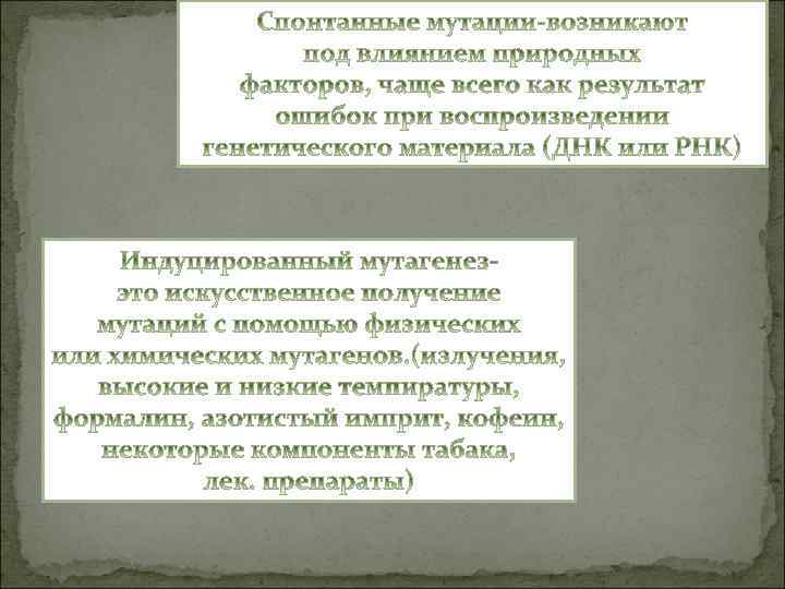 Основные положения мутационной теории разработаны Г. Де Фризом в 1901— 1903 гг. и сводятся к следующему: Мутации возникают внезапно, скачкообразно, как дискретные изменения признаков. В отличие от ненаследственных изменений мутации представляют собой качественные изменения, которые передаются из поколения в поколение. Мутации проявляются по-разному и могут быть как полезными, так и вредными, как доминантными, так и рецессивными. Вероятность обнаружения мутаций зависит от числа исследованных особей. Сходные мутации могут возникать повторно. Мутации не направленны (спонтанны), т. е. мутировать может любой участок хромосомы, вызывая изменения как незначительных, так и жизненно важных признаков.
