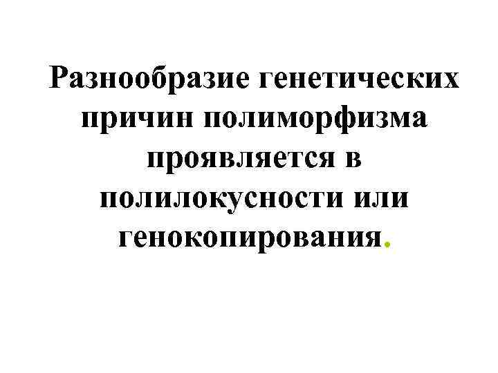Разнообразие генетических причин полиморфизма проявляется в полилокусности или генокопирования.