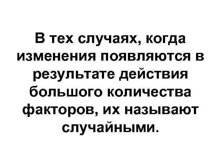 В тех случаях, когда изменения появляются в результате действия большого количества факторов, их называют случайными.