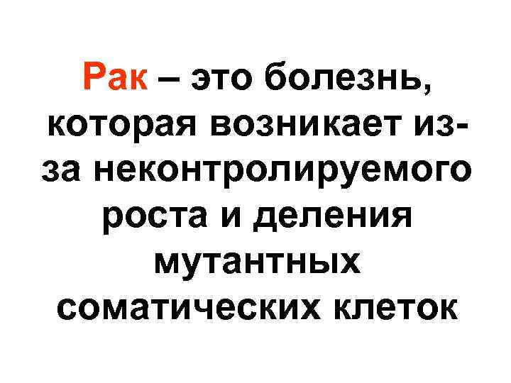 Рак – это болезнь, которая возникает изза неконтролируемого роста и деления мутантных соматических клеток