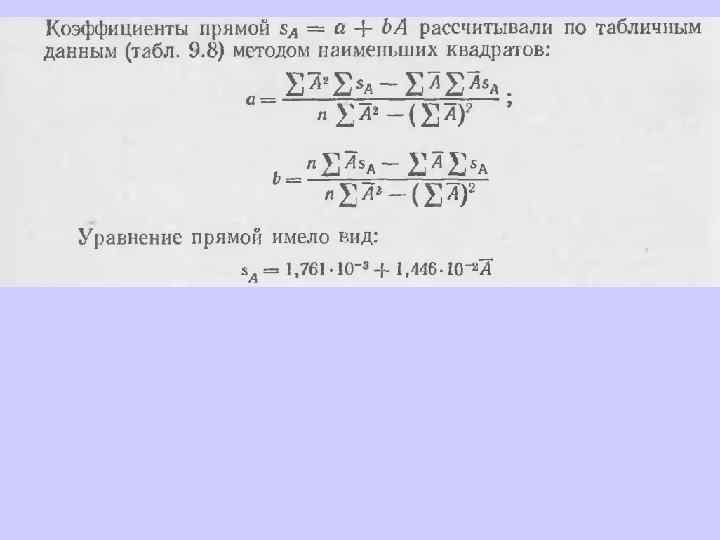 Если имеется п взаимосвязанных пар значений (уi хi), то можно записать: Здесь n — число измерений; хi, — известное содержание (концентрация) определяемого компонента в i-м стандартном растворе; уi — результат измерении аналитического сигнала (оптической плотности) i-го стандартного раствора.
