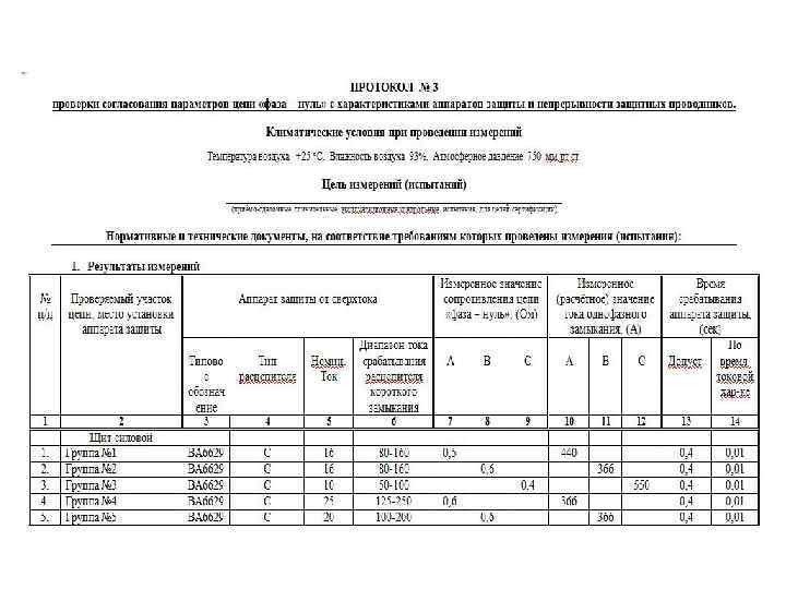 Обработка данных, полученных при испытаниях. Первичные записи рабочей тетради должны содержать следующие данные: * Дату измерений; * Температуру, влажность, давление; * Наименование, тип, заводской номер оборудования; * Номинальные данные объекта испытаний; * Результаты испытаний; * Используемую схему.
