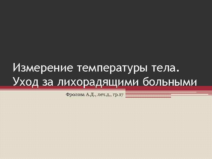 Измерение температуры тела. Уход за лихорадящими больными Фролова А. Д. , леч. д. , гр. 17