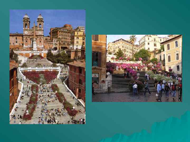 Искусство Италии Архитектура В Риме завершается строительство ряда раннехристианских базилик (Санта Мария Маджоре и др. ), к ним пристраиваются пышные барочные фасады. Сложностью композиции и эффектностью динамичных форм выделяется фонтан Треви, созданный в это время Никколо Сальви. Этот великолепный фонтан с барельефами и статуями на скалистых выступах стоит перед фасадом Большого дворца. Подлинным шедевром позднего барокко в римской архитектуре является лестница на площади Испании (1721 — 1725) архитекторов А. Спекки и Ф. де Санктиса.