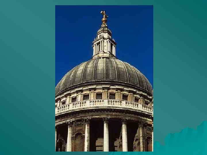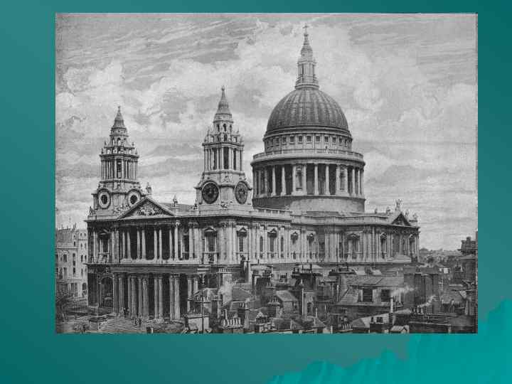 Искусство Англии Архитектура В 1666 г. Лондон сильно пострадал от пожара, поэтому в последующий период активно велись восстановительные работы, которые возглавил королевский архитектор К. Рен. Главный его шедевр — собор Св. Павла (1675— 1710). Гигантский купол собора возвышается над городом. В истории архитектуры сочетание средневекового собора, на руинах которого был возведен храм, и классического купола довольно необычно. Как и собор Св. Петра в Риме, собор Св. Павла имеет внутренний купол и наружный, чисто декоративный, увенчанный большим фонарем. Уникальность сооружения Рена заключается в том, что он применил конструкцию купола из трех частей, так как построил конус из кирпича между внутренним и внешним куполами. По проектам Рена было возведено 52 церкви. Отличительной чертой английского храма стали высокие колокольни.