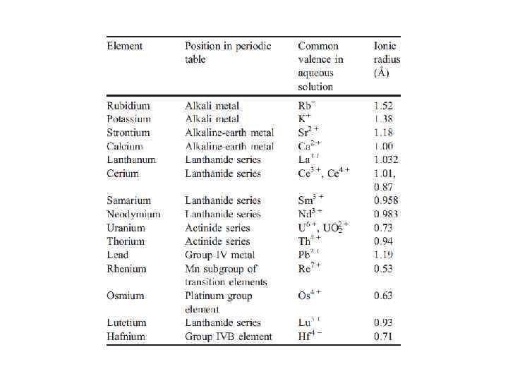 Рубидий-стронциевый метод (Rb-Sr метод) • Рубидий - щелочной металл с ионным радиусом 1. 48 ангстрем и близок к ионному радиусу калия 1. 33 ангстрем. В слюдах, мусковите, флогопите, биотите, лепидолите, КПШ, глинистых минералах. • 85 Rb (72. 165%) 87 Rb (27. 83%). • 87 Rb 87 Sr + - + • Стронций металл с ионным радиусом 1. 13 ангстрем, слегка больше чем у кальция 0. 99 ангстрем. Замещает Са в кальцийсодержащих минералах: плагиоклазе, апатите, карбонатах. Стронционит и целестин. 4 изотопа стронция: • 88 Sr(82. 53%), 87 Sr(7. 04%), 86 Sr(9, 87), 84 Sr(0. 56%).