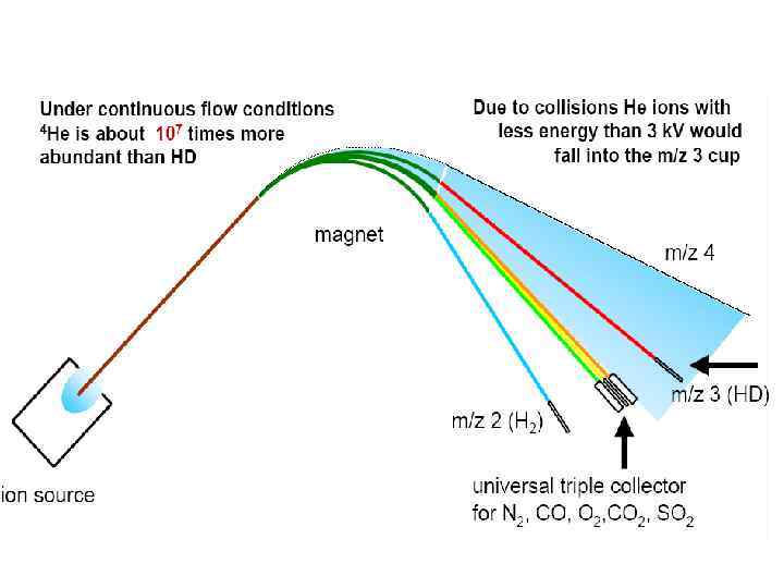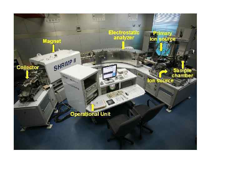 • 87 Rb 87 Sr + - + • По закону радиоактивного распада: 87 Sr = 87 Sr 0 + 87 Rb (eλt - 1 ). • Разделим на 86 Sr : • 87 Sr/86 Sr =( 87 Sr/86 Sr) + 87 Rb (eλt - 1 )/ 86 Sr; 0 • Где λ=1. 42*10 -11/лет или Т 1/2 = 4. 89*1010 лет; • 85 Rb/87 Rb=2. 5926; 86 Sr/88 Sr=0. 1194; 84 Sr/86 Sr=0. 056584. • в уравнении - 87 Sr/86 Sr - измеренное отношение стронция в препарате; • (87 Sr/86 Sr)0 - первичное изотопное отношение стронция; • 87 Rb/86 Sr - измеренное отношение содержаний изотопа 87 Rb к 86 Sr • Для определения времени: • t = [ 1 / λ ] ln[(87 Sr/86 Sr – (87 Sr/86 Sr)0)/ 87 Rb/ 86 Sr +1]