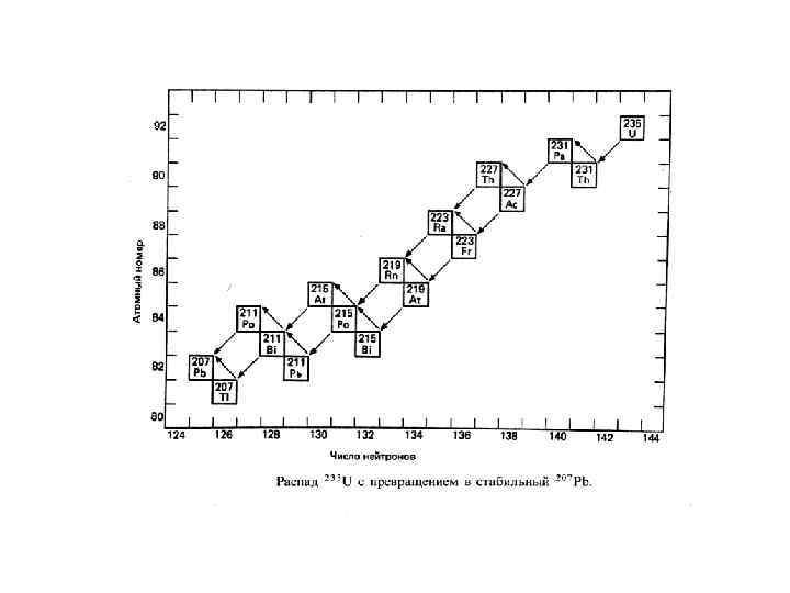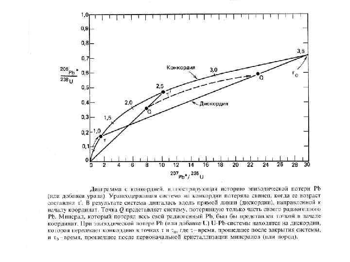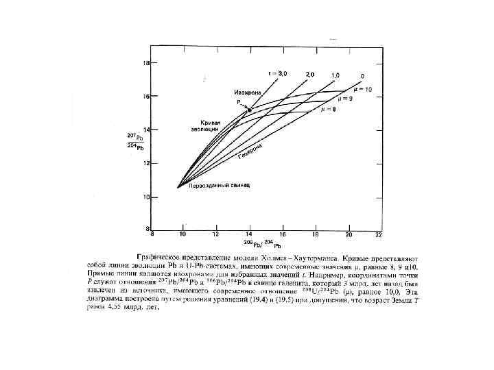Распад урана и тория с образованием свинца описывается уравнениями вида: Аналогичные уравнения описывают распад 235 U до 207 Pb и 232 Th до 238 U. Эти уравнения можно использовать для построения изохрон в координатах 206 Pb/204 Pb 238 U/204 Pb. В это случае получаются изохроны с наклонами, отвечающими возрасту серии образцов при условии, что образцы оставались замкнутыми системами и имели идентичные изотопные отношения Pb. U-Pb системы когенетичных пород можно также интерпретировать в координатах 207 Pb/204 Pb и 206 Pb/204 Pb с помощью уравнения: Если t постоянно, то уравнение дает семейство прямых линий, проходящих через точку с координатами (207 Pb/204 Pb)i и (206 Pb/204 Pb)i Отношения 207 Pb/204 Pb и 206 Pb/204 Pb должны располагаться вдоль прямой линии с тангенсом угла наклона: