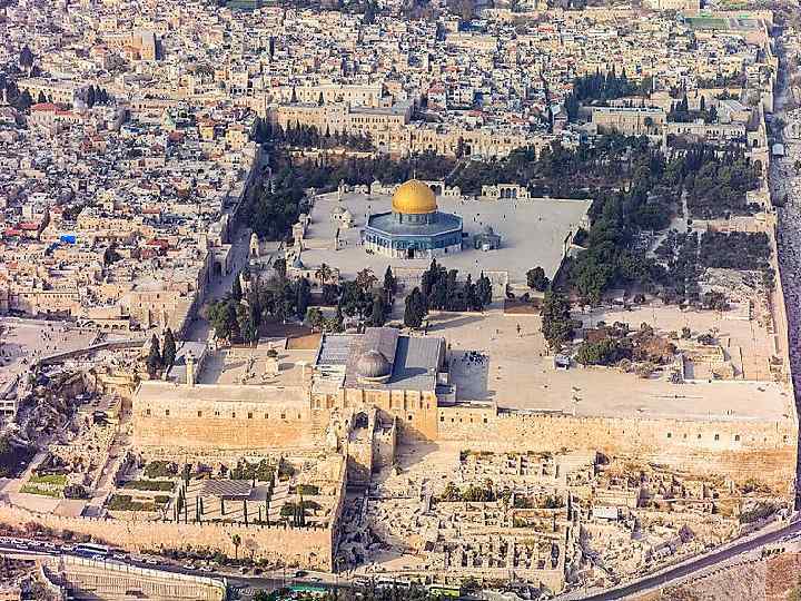 Наиболее святым местом в Иерусалиме является Храмовая гора. Здесь находится камень, с которого началось основание мира. Это место жертвоприношения Ицхака. Участок земли, где располагается Храмовая гора был приобретен царем Давидом. Здесь царь Давид установил жертвенник, а впоследствии его сын Соломон в 960 году до н. э. воздвиг Первый Храм, который был разрушен в 586 г. до