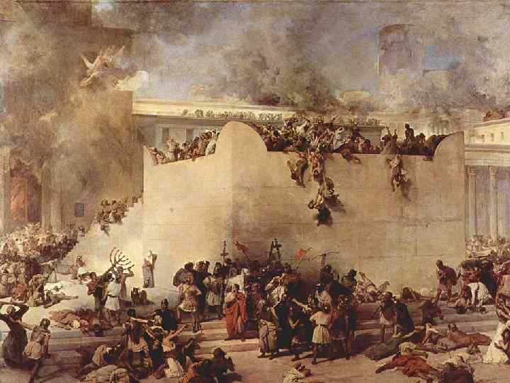 Вавилоняне под предводительством Навуходоносора в 586 год до н. э. [95] захватили Иерусалим вновь и полностью разрушили Храм Соломона до самого основания. Большинство жителей Иерусалима были убиты, оставшиеся взяты в плен и угнаны в рабство в Вавилон. Ковчег Завета был при этом утерян.