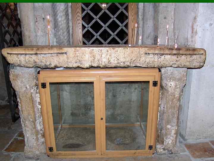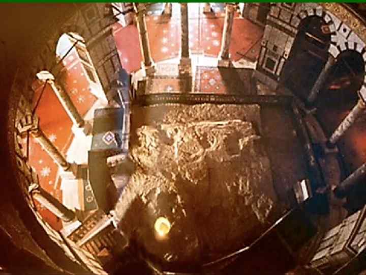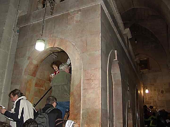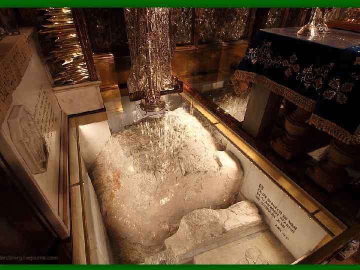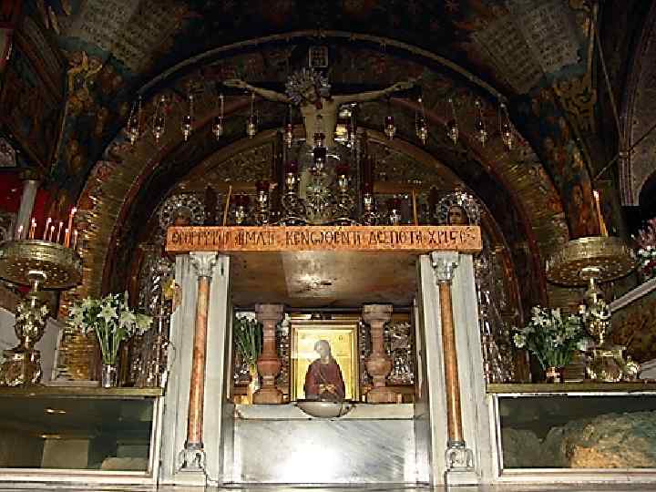 Вторая часть часовни, Гроб Господень, представляет собой маленькую пещерку, где с трудом могут поместиться 3 -4 человека. Это каменное погребальное Ложе, высеченное в природной скале. По еврейскому обычаю, тело Христа было положено головой на запад, а ногами на восток. Ложе закрыто плитой из белого мрамора, чтобы предотвратить попытки отколоть кусочки камня.