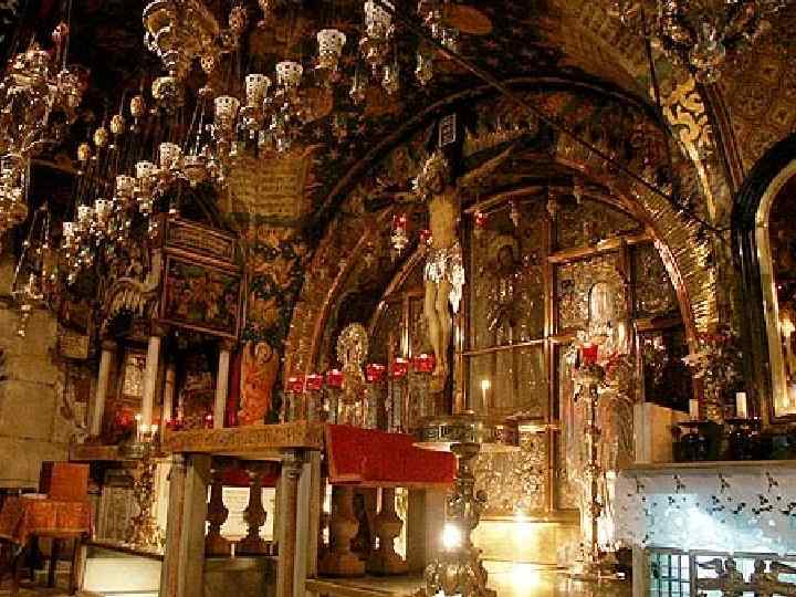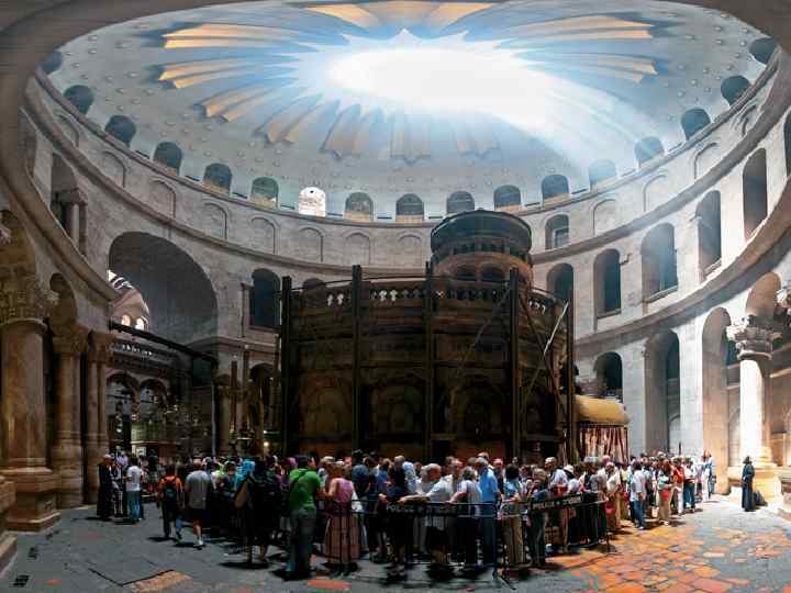 • Первая церковь Гроба Господня была построена в 335 году матерью императора Константина Великого - Еленой. В подземелье храма Елена обнаружила вход в пещеру с Гробом Господним. Также ею был обнаружен и крест, на котором распяли Иисуса. • Существует легенда, что Еленой было найдено три креста и для того, чтобы определить, какой крест истинный, она прикладывала их к гробу покойника, проходящей мимо похоронной процессии. При прикосновении истинного креста, произошло чудо воскрешения. • За многовековую историю Иерусалима Храм неоднократно разрушался, перестраивался, переходил под власть то христианских, то мусульманских правителей. • В том виде, в котором он существует сейчас, Храм был отстроен в 1810 году после огромного пожара.