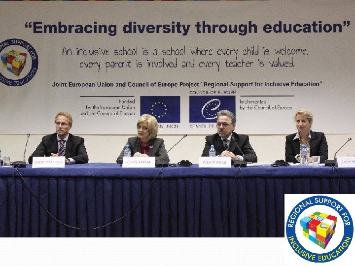 Регионална конференција у Тирани Embracing Diversity trough Education – Прихватање различитости кроз образовање Широко схватање појма инклузије образовањe деце са посебним потребама укључивање деце из свих социјалних група и свих заинтересованих учесника (stakeholders) у живот и рад школе.