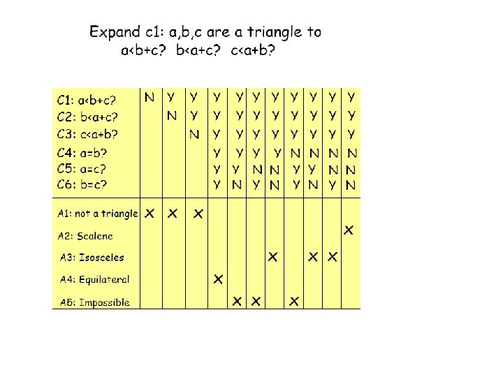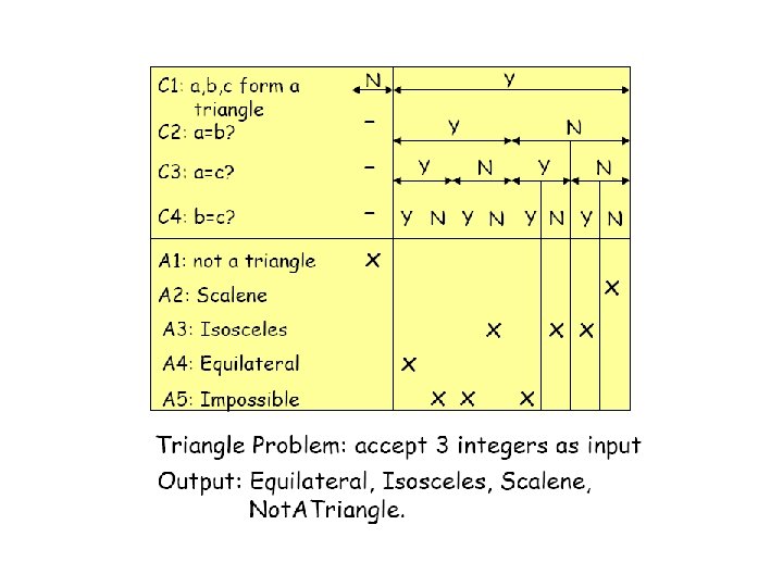 Comparaison – effort de test (1) • Lire 3 valeurs entières. • Ces trois valeurs sont interprétées comme représentant les longueurs des côtés d’un triangle. • Le programme imprime un message qui établit que le triangle est isocèle, équilatéral ou scalène.