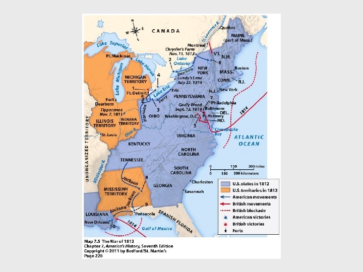 III. The War of 1812 and the Transformation of Politics A. Conflict in the Atlantic and the West p 222 1. The Embargo of 1807 -in response to impressment by British Navy-”peaceful coersion” very unpopulardamaged economy of U. S. worse than it hurt France and Britain 2. Western War Hawks-Republicans from South and West that favored war included Henry Clay and John C. Calhoun -reasons P 223 -224 B. The War of 1812 –events p 224 -230 1. Federalists Oppose the War-The Hartford Convention-another secession scheme-too late 2. The War’s End- Jacksons victories , Treaty of Ghentended the War of 1812