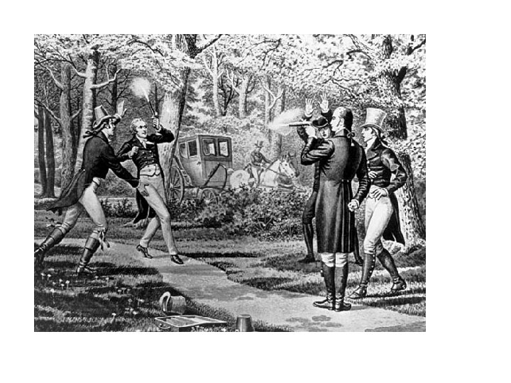 Jefferson’s Challenges (cont’d) 4. Burr vs. Hamilton duel 1. Burr mortally wounds Hamilton 2. Murder charges dropped 5. 1806 Burr Conspiracy 1. Create a new country-->get Mex. from Spain, unite it with Louisiana Territory. 2. Burr aquitted