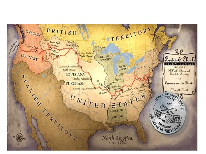 II. Lewis & Clark Expedition 1. Purchase doubles the U. S. 2. FR & SP removed as threats. 3. All water route connecting the Missouri River with the Pacific Ocean? 4. Meriwether Lewis & William Clark 5. 1804 St. Louis to the Pacific Ocean 6. 1806 They return; w/ detailed accounts