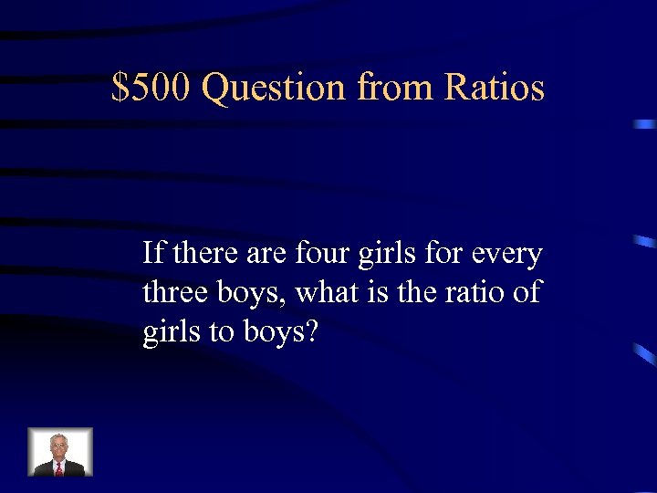 $500 Question from Ratios If there are four girls for every three boys, what is the ratio of girls to boys?