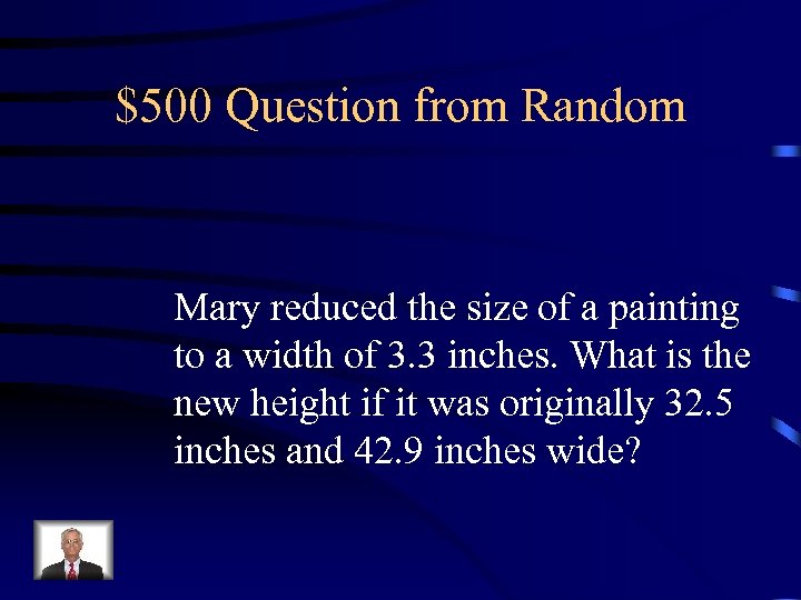 $500 Question from Random Mary reduced the size of a painting to a width of 3. 3 inches. What is the new height if it was originally 32. 5 inches and 42. 9 inches wide?