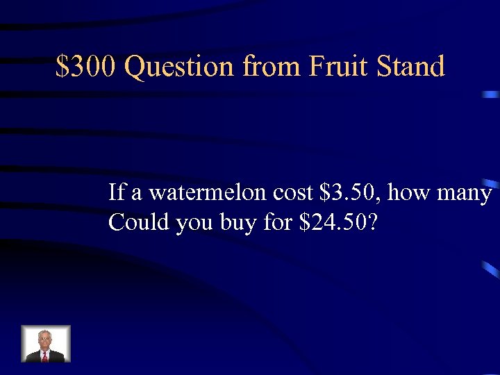$300 Question from Fruit Stand If a watermelon cost $3. 50, how many Could you buy for $24. 50?