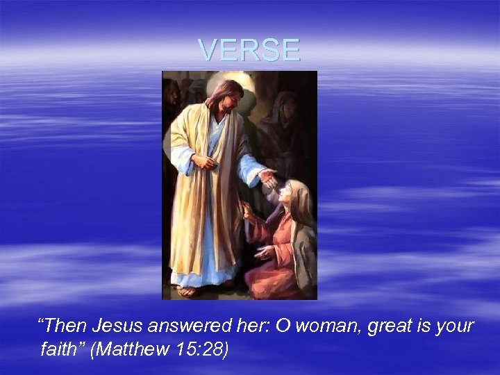 VERSE “Then Jesus answered her: O woman, great is your faith” (Matthew 15: 28)