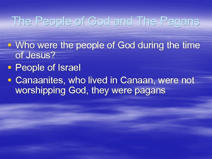 The People of God and The Pagans § Who were the people of God during the time of Jesus? § People of Israel § Canaanites, who lived in Canaan, were not worshipping God, they were pagans