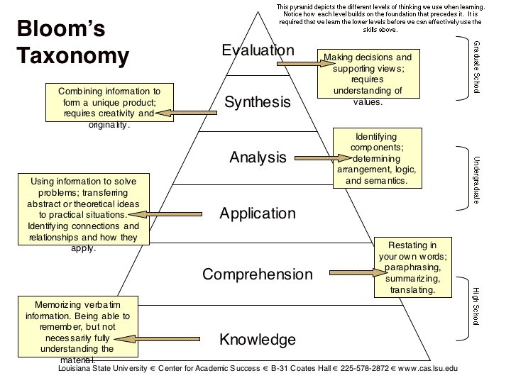 Bloom’s Taxonomy for gifted students Synthesis (Creating) Evaluation (Evaluating) Analysis (Analysing) Application (Applying) Comprehension (Understanding) Knowledge (Knowing)