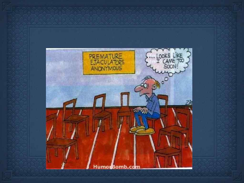 Loss of orgasms: Usually psychological Premature ejaculation: anxiety