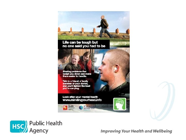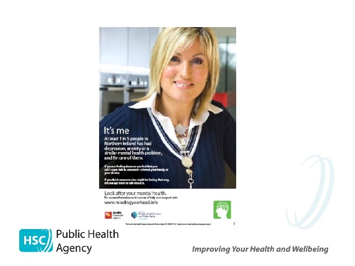Public Information Campaigns Promoting Mental Health Strategy and Action Plan (2003 -2008) “by September 2005 develop a public and professional information campaign to raise awareness and understanding of mental health issues and reduce stigma attached to mental health” Protect Life: a shared vision the Northern Ireland Suicide Prevention Strategy and action plan (2006 -2008) “by 2007 to develop and implement a suicide awareness information campaign which helps to destigmatise mental health and encourage help seeking behaviour”
