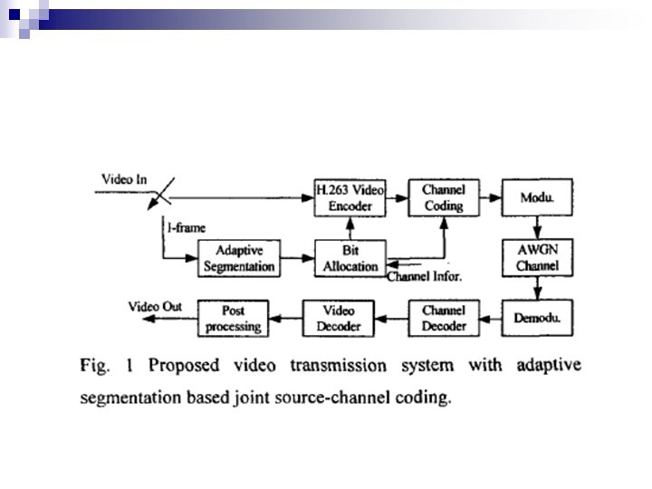 Video Transmission System n n In a video communication system, the video is first compressed and then segmented into fixed or variable length packets and multiplexed with other types of data, such as audio. Unless a dedicated link that can provide a guaranteed quality of service (Qo. S) is available between the source and the destination, data bits or packets may be lost or corrupted, due to either traffic congestion or bit errors due to impairments of the physical channels.