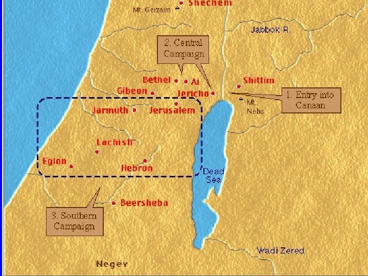 Joshua 10: 40 So Joshua conquered all the land: the mountain country and the South and the lowland the wilderness slopes, and all their kings; he left none remaining, but utterly destroyed all that breathed, as the LORD God of Israel had commanded. 41 And Joshua conquered them from Kadesh Barnea as far as Gaza, and all the country of Goshen, even as far as Gibeon. 42 All these kings and their land Joshua took at one time, because the LORD God of Israel fought for Israel. 43 Then Joshua returned, and all Israel with him, to the camp at Gilgal.