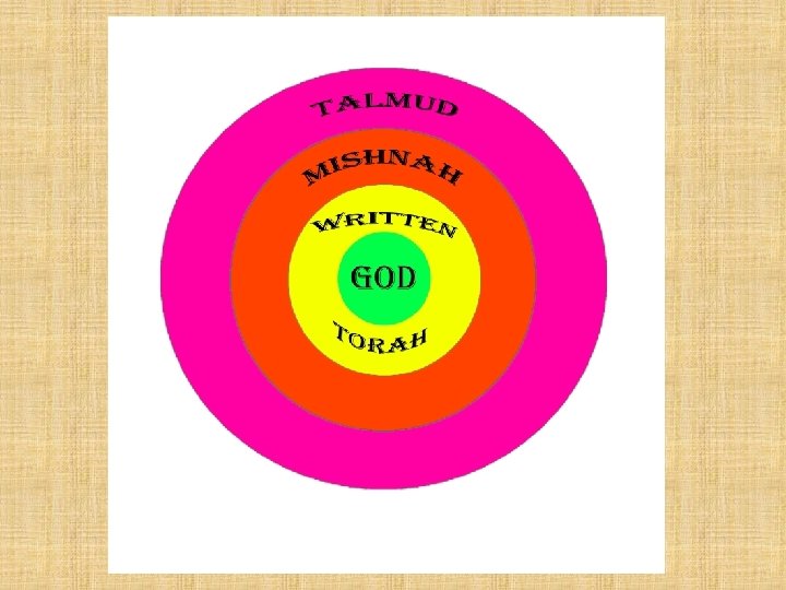 the oral torah • complements written Torah; material taught and transmitted by Judaism’s great rabbis (teachers) • recorded in Mishnah and Talmud • addresses the changing circumstances and day to day life of the Jews – does not replace the Written Torah