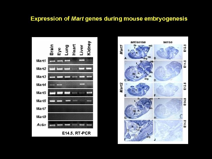 Expression of Mart genes during mouse embryogenesis E 14. 5, RT-PCR