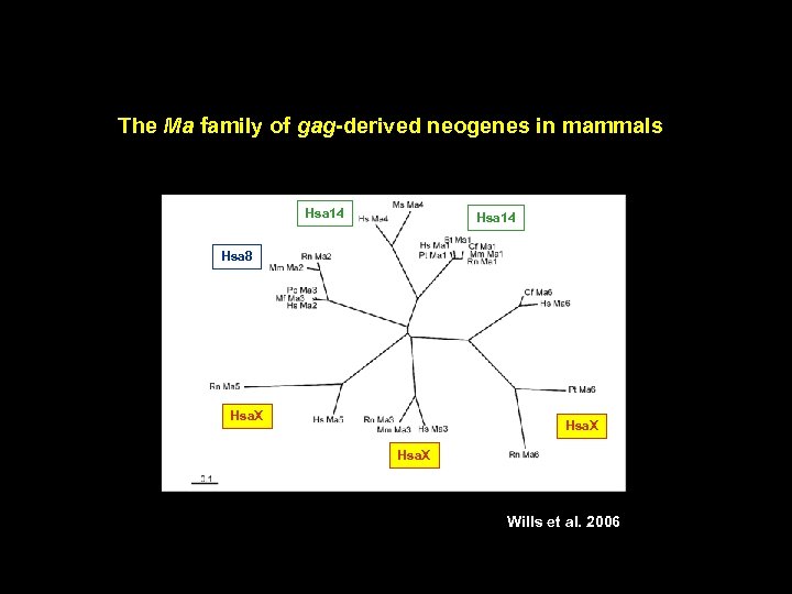The Ma family of gag-derived neogenes in mammals Hsa 14 Hsa 8 Hsa. X Paper Ma Hsa. X Wills et al. 2006