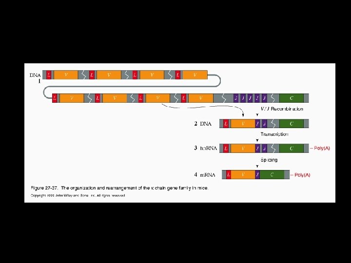 Somatic V(D)J recombination in immunoglobulin genes L: Leader V: Variable C: Constant J: Joint D: Diversity RSSs recombination signal sequences