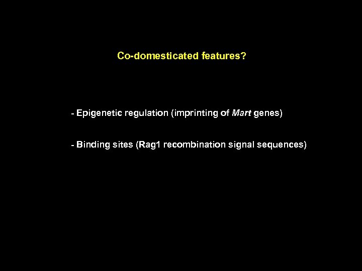 Co-domesticated features? - Epigenetic regulation (imprinting of Mart genes) - Binding sites (Rag 1 recombination signal sequences)