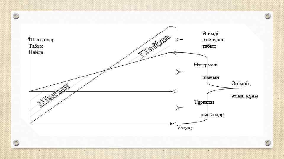 Әр кәсіпорын үшін (әсіресе жаңа) қай уақыттан бастап ол пайда алады деген сұраққа жауап табу өте маңызды болады. Сатудың шекті көлемі – бұл кәсіпорын табыстары оның шығындарына тең болатын өндіріс көлемі. Осы шекті көлемді анықтау формулалары келесі:
