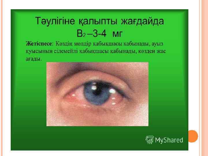 КӨЗ АДАМНЫҢ МАҢДАЙДАҒЫ ЖҰЛДЫЗЫ БОЛҒАНДЫҚТАН, ОНЫ ҚОРҒАЙ БІЛУ АБЗАЛ. 1. КӨЗДІ БӨГДЕ ЗАТТАРДЫҢ ТҮСУІНЕН ҚОРҒАЙ БІЛУ; 2. ЖҰМЫС ОРНЫНДАҒЫ ЖАРЫҚТЫ РЕТТЕП ОТЫРУ; ОЛ ТЫМ ШАҢҚИҒАН ЖАРЫҚ НЕМЕСЕ ТЫМ КӨМЕСКІ, ӘЛСІЗ БОЛМАУЫ КЕРЕК. 3. ҮСТЕЛГЕ КОЯТЫН ШАМНЫҢ ЖАРЫҒЫН СОЛ ЖАҚТАН ТҮСІРУ. 4. КІТАПТЫ ОКЫҒАНДА, ІС ТІККЕНДЕ КӨЗДЕН 30 -35 СМ ҚАШЫҚТЫҚТА ҰСТАУ. 5. ТЕЛЕДИДАРДЫ ҰЗАҚ ҚАРАМАУ, 2, 5 -3 М ҚАШЫҚТЫҚТАН КӨРУ. 6. ВИТАМИНДІ (ӘСІРЕСЕ «А» ) ТАМАҚ ІШУ. 7. ОЙ ЕҢБЕГІ МЕН ДЕНЕ ЕҢБЕГІН АЛМАСТЫРЫП ОТЫРУ. 8. ТЕМЕКІ ТАРТПАУ, ІШІМДІК ІШПЕУ. 9. КІТАПТЫ КӨЛІКТЕ, ЖАТЫП ОҚЫМАУ. 10. СЕРУЕНДЕГЕНДЕ, ОРМАН-ТОҒАЙ АРАЛАҒАНДА КӨЗДІ БҰТАҚ ТИЮДЕН САҚТАУ.